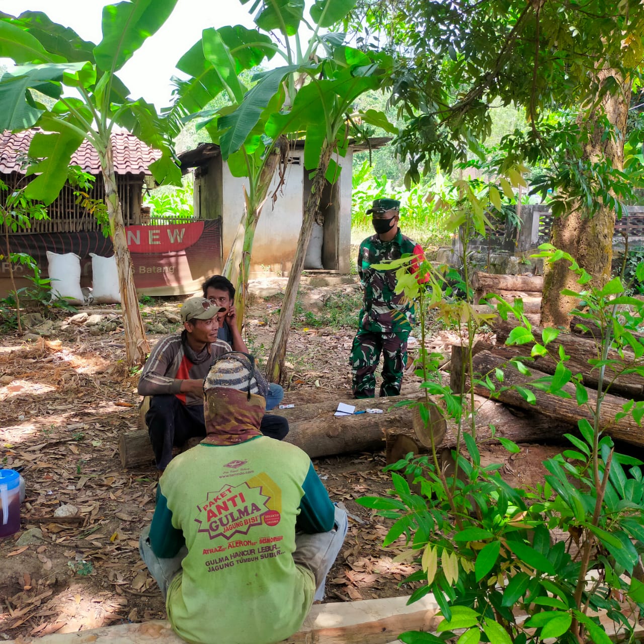 Serda Heri salah satu anggota Satgas menghampiri warga yg sedang beristirahat sembari menyapa “panas banget pak cuacanya hari ini, kita istirahat sebentar nanti dilanjutkan lagi” lalu sambil istirahat sambil bergurau.