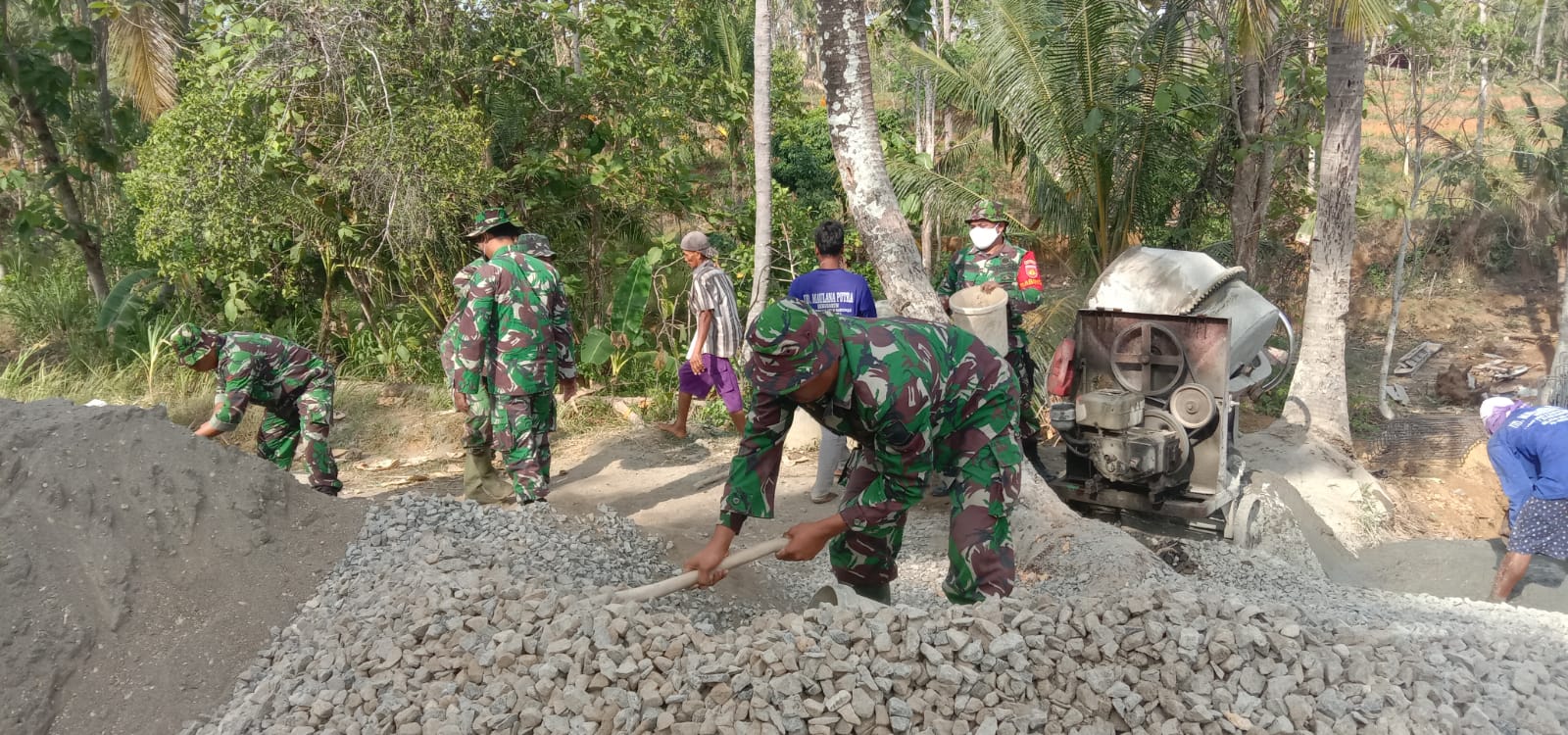 Marzuki (44 th) warga setempat yang hari ini mendapat bagian membantu dalam bekerja menuturkan bahwa adanya alat bantu aduk luluh(molen) sangatlah membantu para pekerja dalam mrnyiapkan adonan dalam pengecocaran, para pekerja bahu membahu dalam kegitan tersebut, ada yang bagian pasir, bagian semen, bagian air dalam pengisian moleh.
