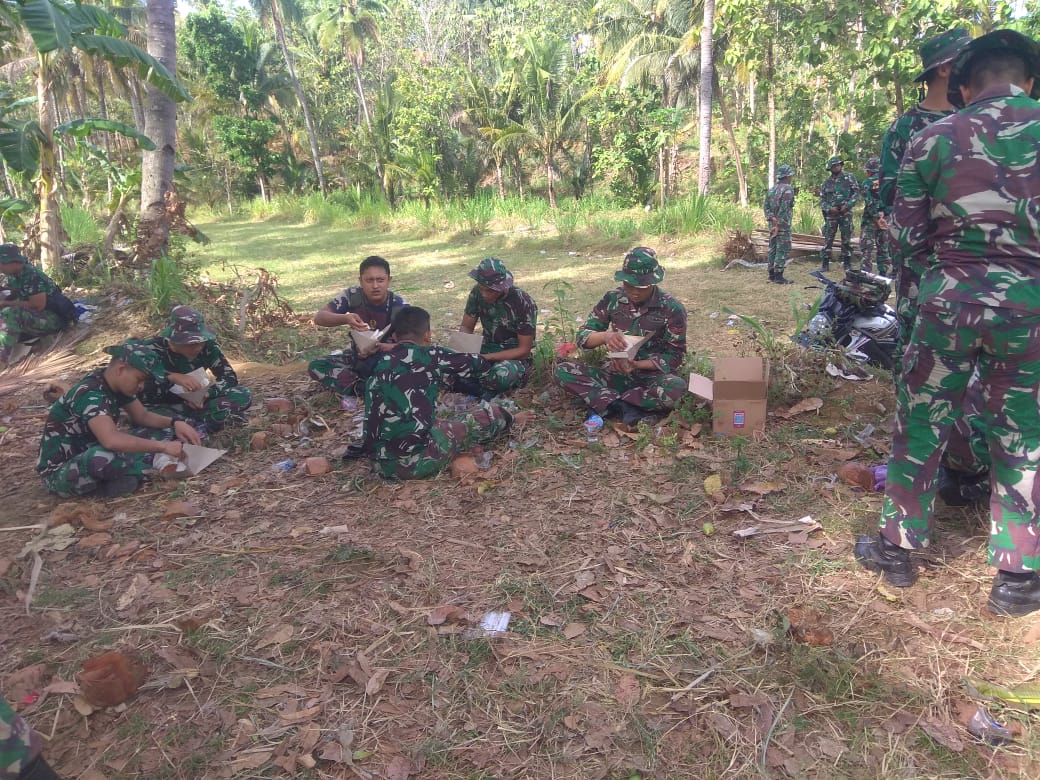 Pada kesempatanya saat istirahat Anggota Kodim 0720/Rbg juga memanfaatkan kesempatan tersebut untuk menikmati hidangan yang sudah disediakan oleh warga setempat. Tanpa canggung dan malu hidangan tersebut dinikmati bersama-sama dengan alakadarnya namun tetap bermakna.