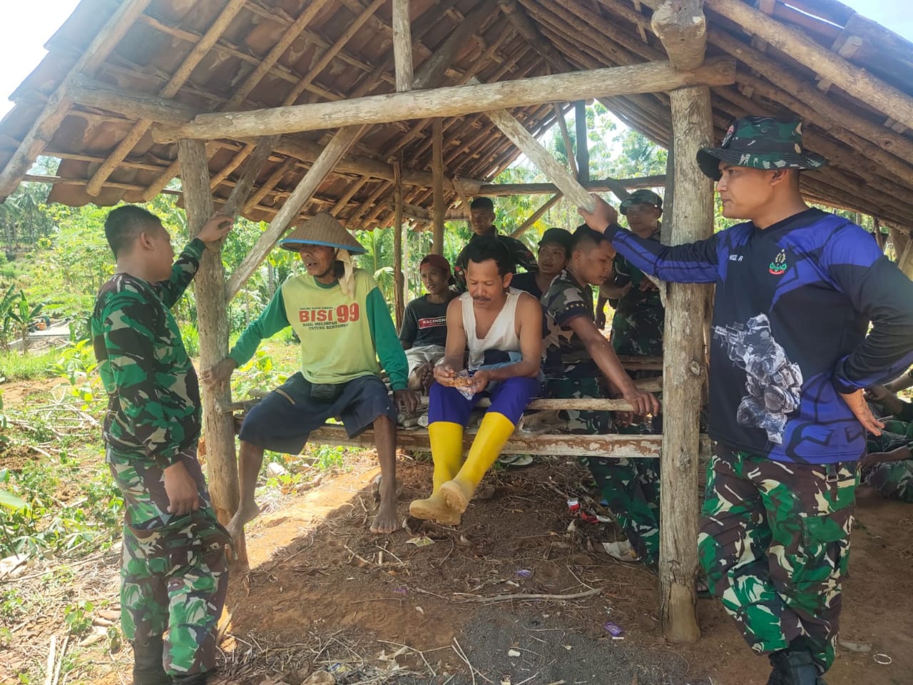 Pagi hari di sebuah Gubuk tua di lahan terbuka perkebunan milik warga Ds. Trembes, Kec. Gunem, Kab. Rembang, Kopda Edi Supriyanto dan Ulil Absor beserta rekan-rekan Satgas TMMD (TNI Manunggal Membangun Desa) Reg-112 Kodim 0720/Rembang dari Yonif (Batalyon Infanteri) 410/Alugoro, melaksanakan kegiatan Komsos (Komunikasi Sosial) dengan warga masyarakat sekitar yang juga akan membantu dalam Karya Bhakti pekerjaan TMMD, untuk menjalin keakraban satu sama lain. Kamis (16-09-2021).
