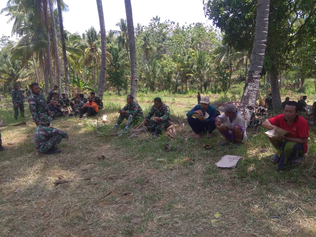 Saat ini kebetulan bertepatan dengan musim kemarau dan jika siang hari cuaca cukup terasa panas, para pekerja baik dari anggota Satgas maupun warga yang saat itu sedang mendapatkan giliran membantu bekerja memanfaatkan rindangnya pepohonan yang ada dilokasi dimana mereka bekerja.