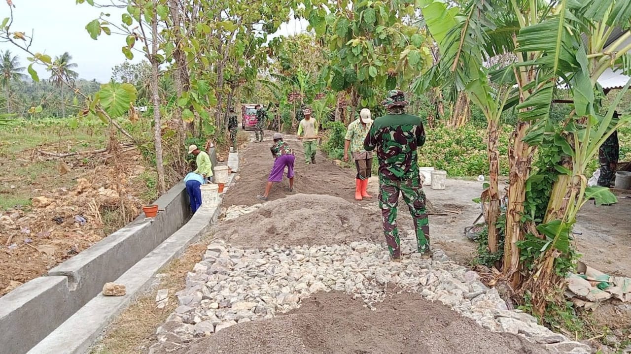 Proses pengerjaan fisik dalam pelaksanaan kegiatan TMMD Reguler ke 112, di Desa Trembes Kecamatan Gunem Kabupaten Rembang terus berjalan, bahkan, beberapa di antaranya sudah selesai 80 persen. Kamis (07/10/2021)