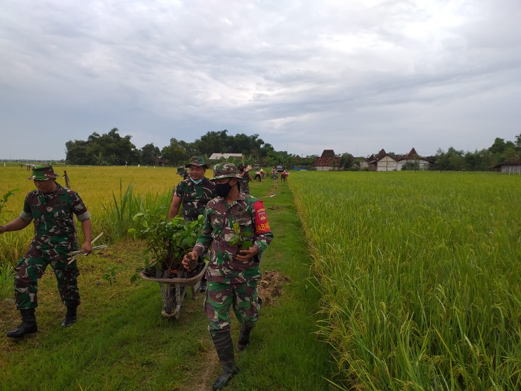 Dalam rangka melestarikan fungsi lingkungan hidup dan mencegah terjadinya kerusakan. Koramil 04/Sumber Kodim 0720/Rembang bersama Perangkat Desa, Linmas dan forum masyarakat melaksanakan penanaman 1.000 pohon di kawasan embung dan sepanjang jalan pertanian Dukuh Kedungwatu desa Kedungasem Kecamatan Sumber kabupaten Rembang, Rabu (26/01/2022).