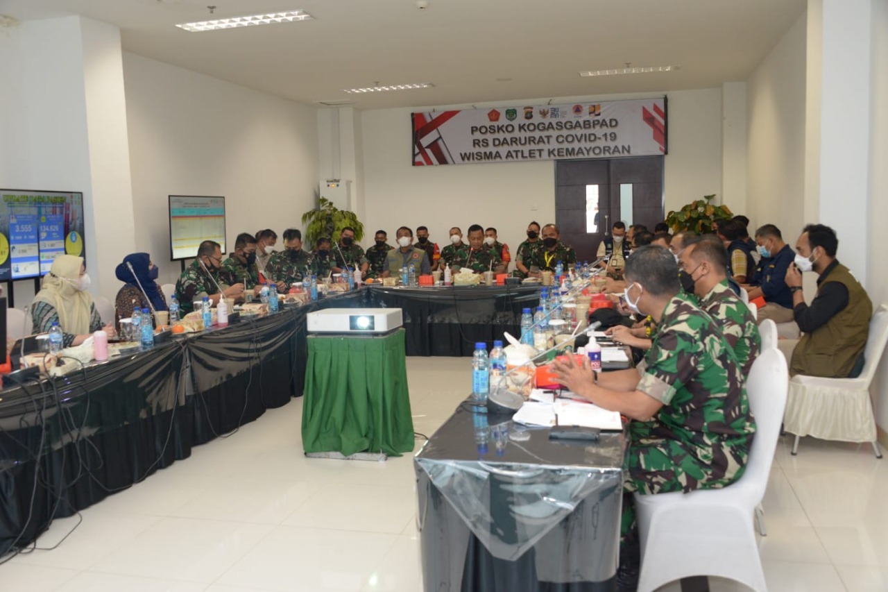Untuk mengambil langkah antisipasi dalam menghadapi lonjakan kasus omicron yang semakin meningkat, Pangdam Jaya Mayjen TNI Untung Budiharto selaku Pangkogasgabpad melakukan rapat koordinasi bertempat di Posko Kogasgabpad RSDC Covid-19 Wisma Atlit Kemayoran, Jakarta Utara. Sabtu (29/01/2022).