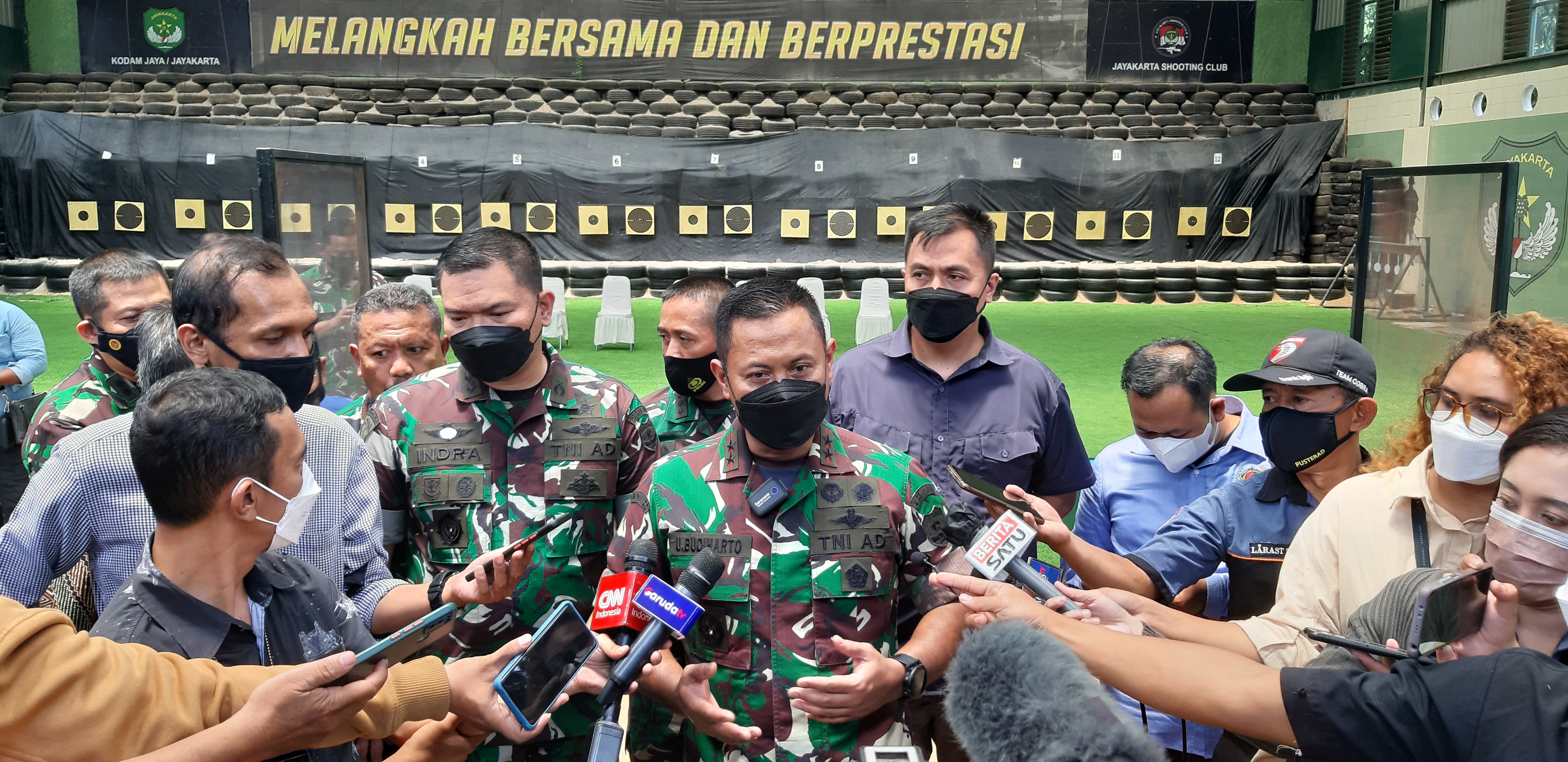 Sebelum melakukan diskusi bareng pangdam jaya, para pemimpin redaksi melakukan kegiatan latihan menembak dengan tetap melaksanakan prokes pencegahan covid 19.