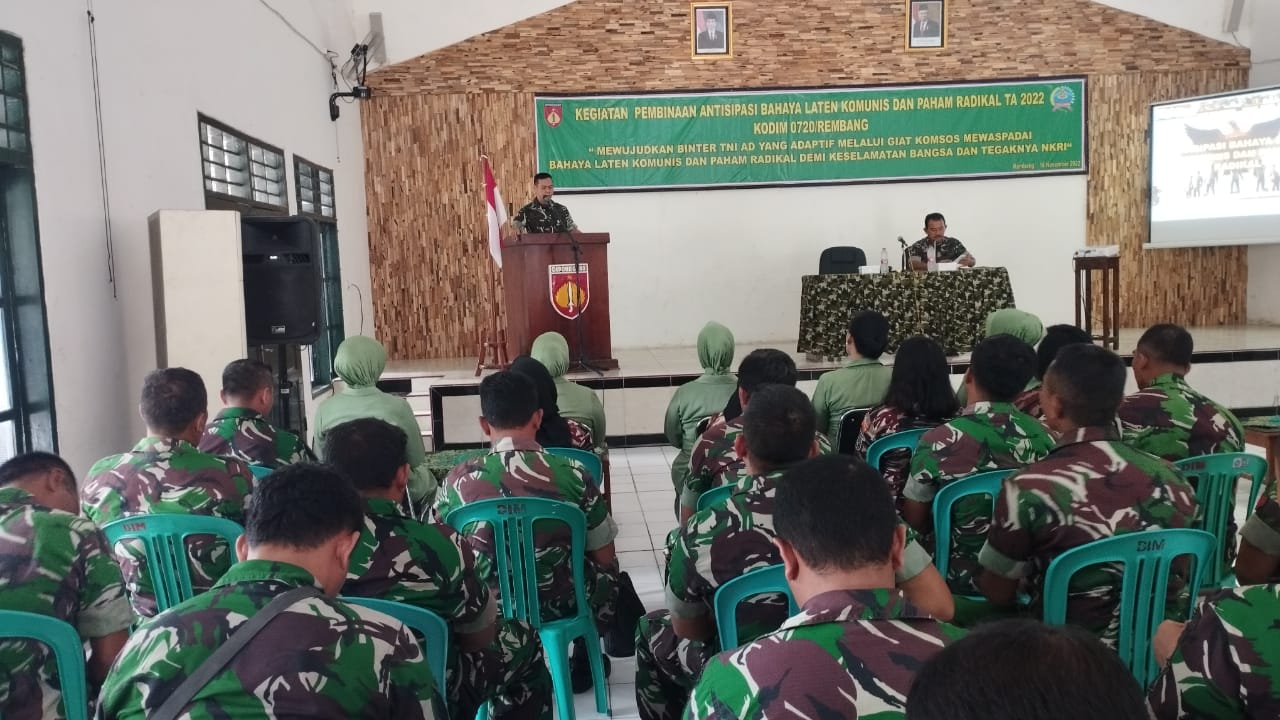 Hal itu disampaikan Komandan Kodim (Dandim) 0720/Rembang Letkol Czi Parlindungan Simanjuntak,S.Sos.M.Si dalam Sosialisasi Balatkom dan Paham Radikalisme di lingkungan TNI AD bertajuk “Waspada Komunisme dan Paham Radikal Demi Keselamatan NKRI “, bertempat di Gedung Manunggal, Makodim 0720/Rembang . Kamis (03/11/2022).