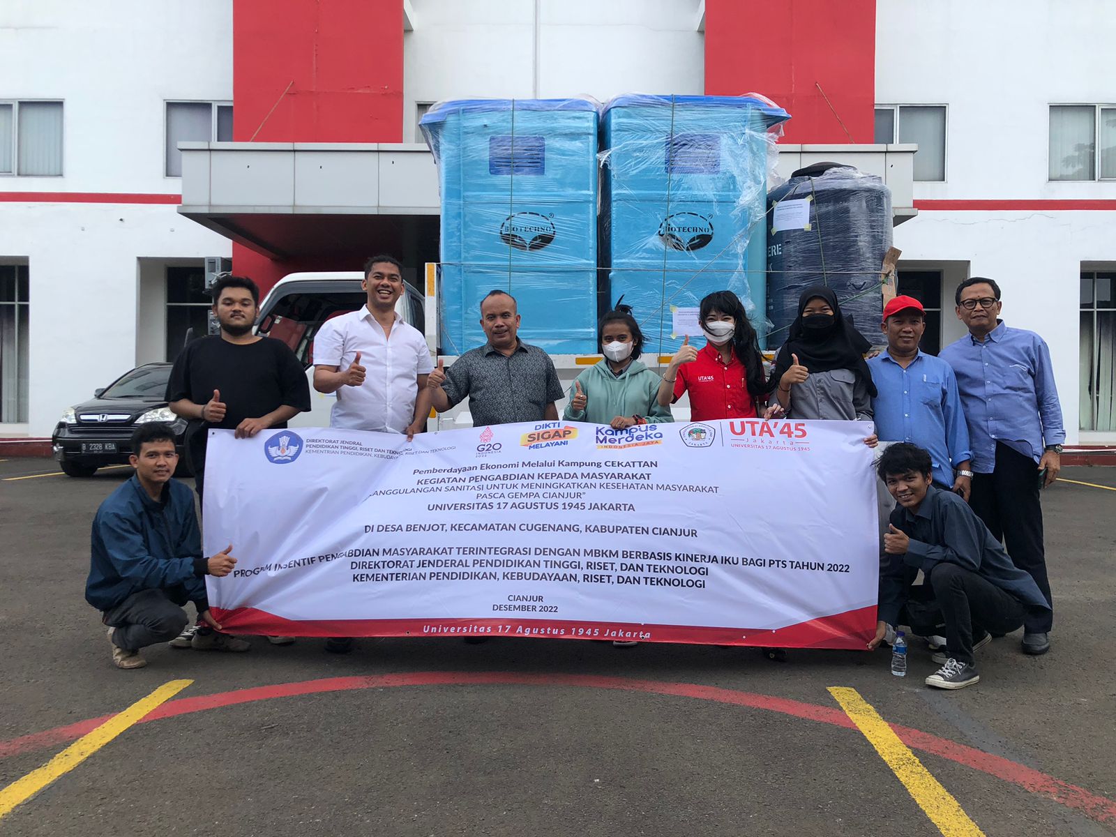 Dalam kesempatan pengabdian masyarakat ini, Universitas 17 Agustus 1945 Jakarta berupaya menyediakan MCK dan Sanitasi yang layak untuk warga berupa Toilet Portable, Toren Air, Pompa Air dan Tenda Pengungsian.