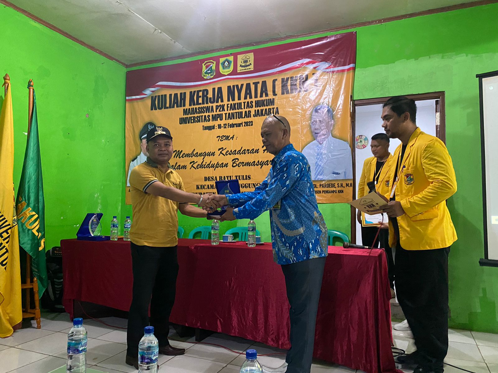 Sebanyak 42 mahasiswa Universitas Mpu Tantular (UMT) melaksanakan Kuliah Kerja Nyata (KKN) di Desa Batu Tulis, Kabupaten Bogor. Kegiatan berlangsung di Aula Kantor Desa Batu Tulis, Sabtu 10 Februari 2023.