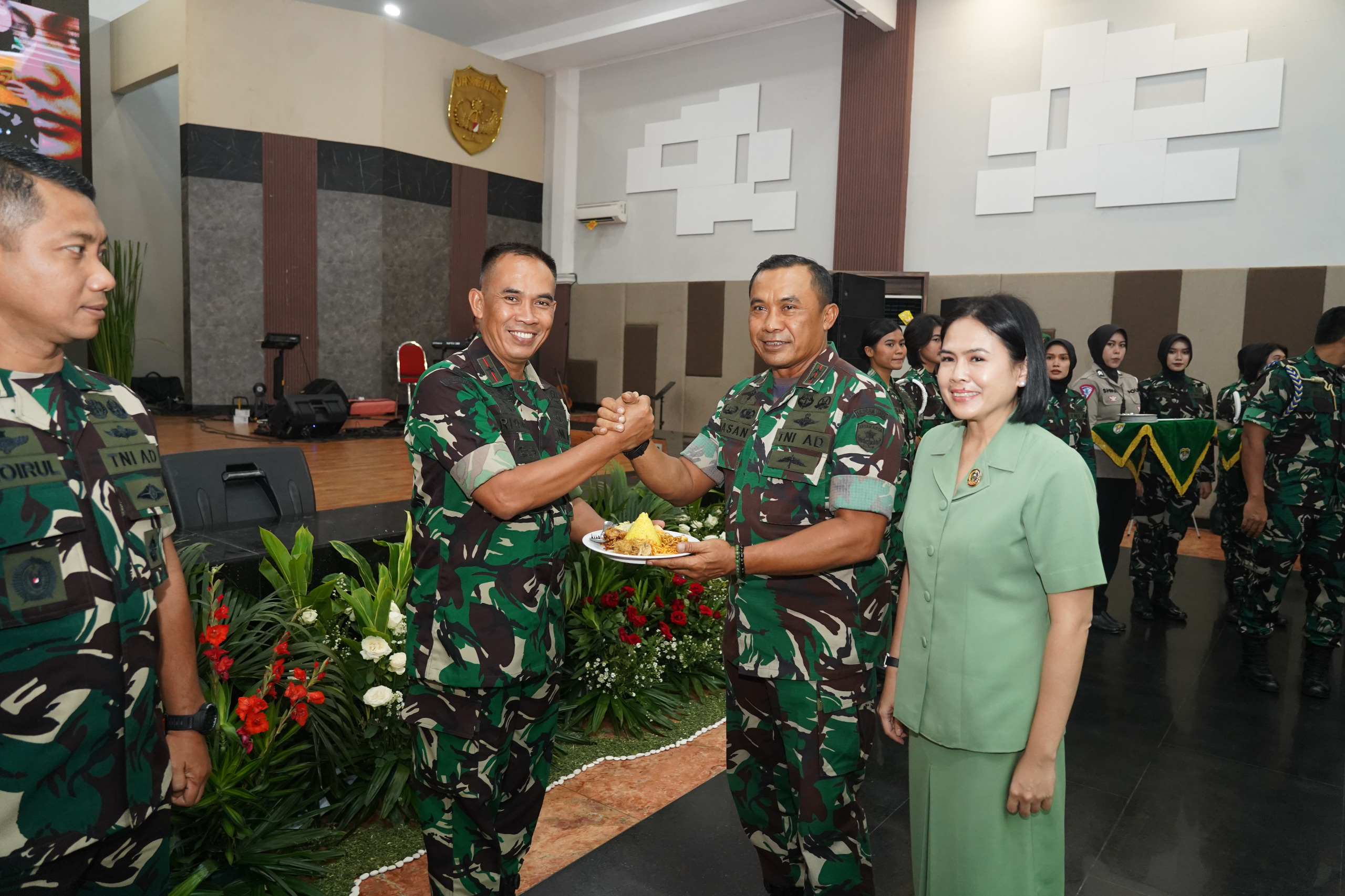 Kesempatan yang penuh bahagia itu juga dilaksanakan pemotongan Nasi Tumpeng oleh Ketua Persit KCK PD Jaya Ny. Ririx Mohamad Hasan yang didampingi oleh Pangdam Jaya Mayjen TNI Mohamad Hasan yang disaksikan oleh seluruh undangan yang hadir.