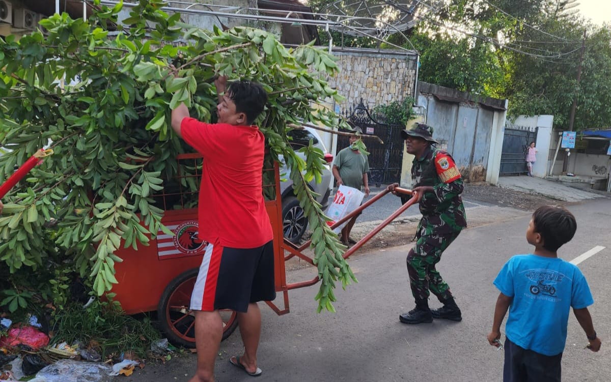 “Kegiatan karya bakti yang dilaksanakan oleh Babinsa Serda Muhammad, Koptu Erwin bersama Dinas kebersihan Matraman dan perangkat RT.14 tersebut, karena banyaknya sampah topingan pohon yang menumpuk di sisi jalan selokan air, sehingga harus segera diangkat menggunakan gerobak sampah PPSU Pisangan Baru.