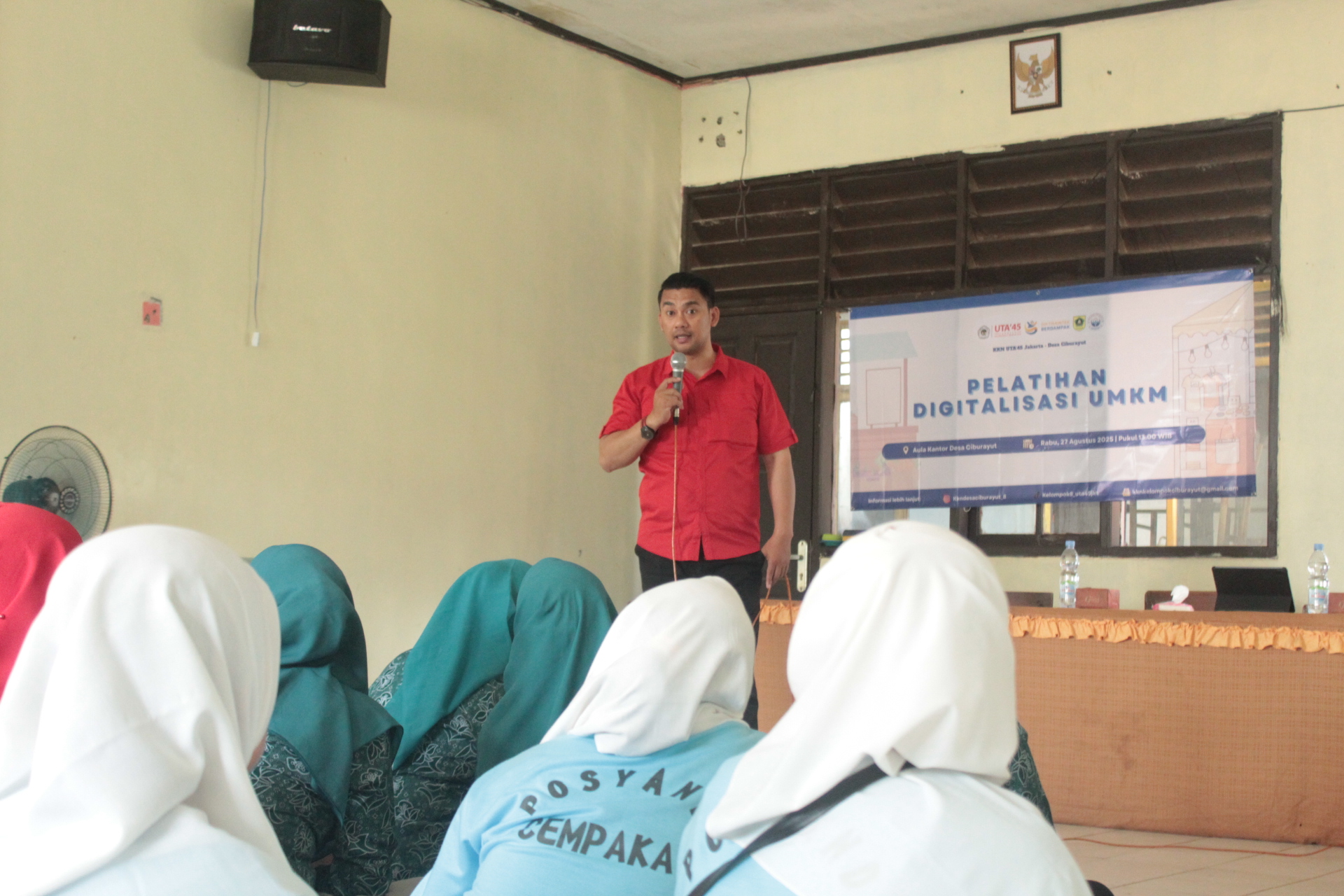 Mahasiswa Kuliah Kerja Nyata (KKN) Universitas 17 Agustus 1945 Jakarta Kelompok 8 melaksanakan kegiatan Pemberdayaan kepada Masyarakat dengan tema “Pelatihan Digitalisasi UMKM” yang berlangsung di Aula Balai Desa Ciburayut, Rabu (27/8).