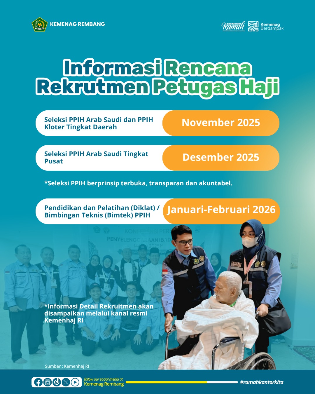Hal ini disampaikan oleh Kepala Seksi Penyelenggaraan Haji dan Umrah (PHU) Kemenag Rembang Ali Muchyidin, Senin (10/11/2025).