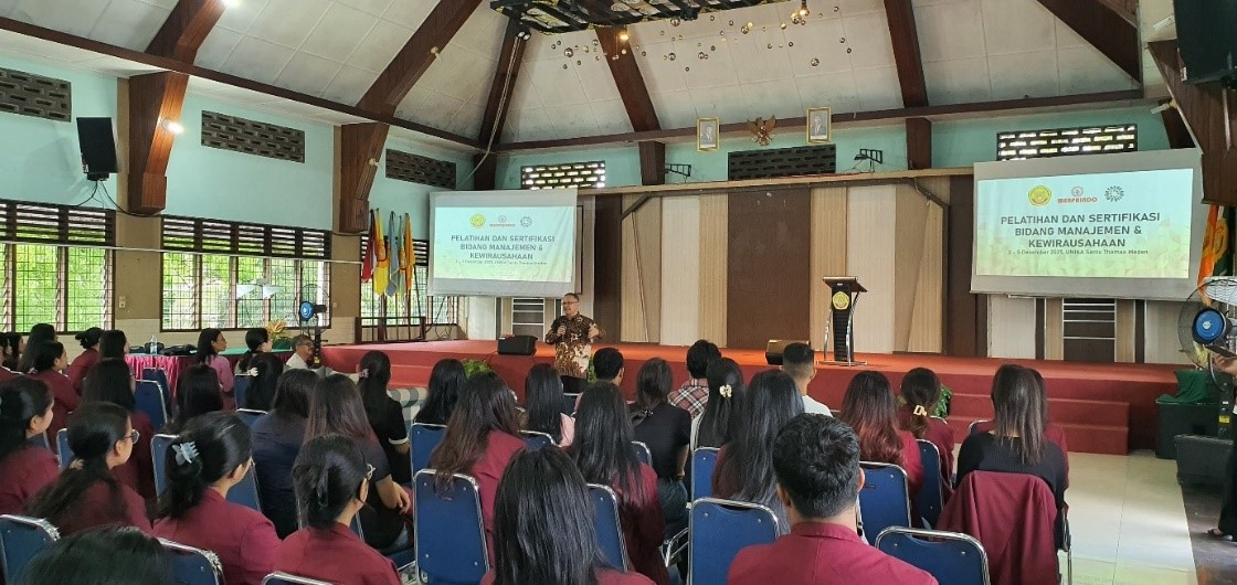 Universitas Katolik Santo Thomas Medan kembali menunjukkan komitmennya dalam meningkatkan kualitas sumber daya manusia dengan mengambil langkah strategis menyelenggarakan Pelatihan dan Sertifikasi BNSP di tiga bidang penting yaitu: Digital Marketing, Administrasi Keuangan, dan Operasional Layanan. Kegiatan yang berlangsung selama tiga hari, mulai 3 – 5 Desember 2025 ini diikuti oleh +/- 100 peserta dari berbagai jurusan pada Prodi Manajemen. (5/12/2025)