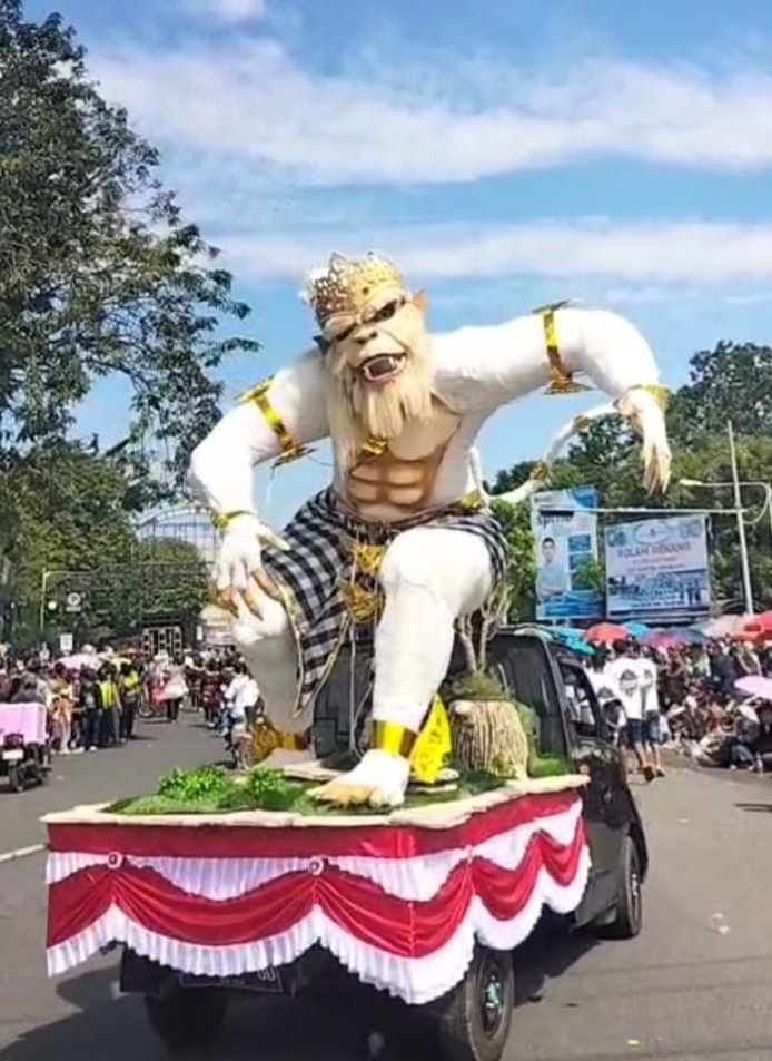 Ribuan warga tampak memadati sepanjang jalan yang akan dilalui iring – iringan Kirab Karnaval yang kental dengan nuansa nilai – nilai budaya lokal. Ogoh – ogoh berbentuk replika binatang ternak, tokoh pewayangan (Anoman) dan miniatur perahu juga turut ditampilkan.
