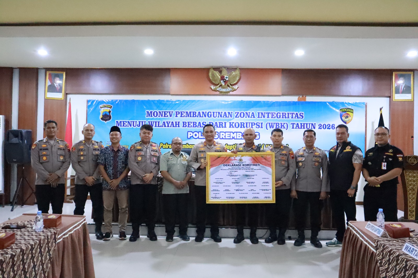 Dalam upaya mewujudkan tata kelola pemerintahan yang bersih dan akuntabel, Polres Rembang melaksanakan kegiatan Monitoring dan Evaluasi (Monev) Pembangunan Zona Integritas (ZI) menuju Wilayah Bebas dari Korupsi (WBK) Tahun 2026, Rabu (15/04/2026).