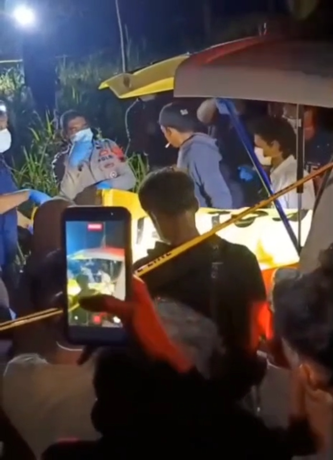 Sampai pukul 18. 10 WIB. sejumlah personel masih melakukan olah TKP di lokasi kejadian Jasad selanjutnya dibawa menggunakan kendaraan petugas untuk keperluan identifikasi lebih lanjut. (Trisno Aji).