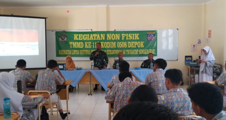 Kodim Depok Perkuat Wawasan Kebangsaan Pelajar SMK Daerah|September 27, 2023by Red Depok, indonesianews.co.id – Personel Komando Distrik Militer (Kodim) 0508/Depok melakukan penyuluhan tentang